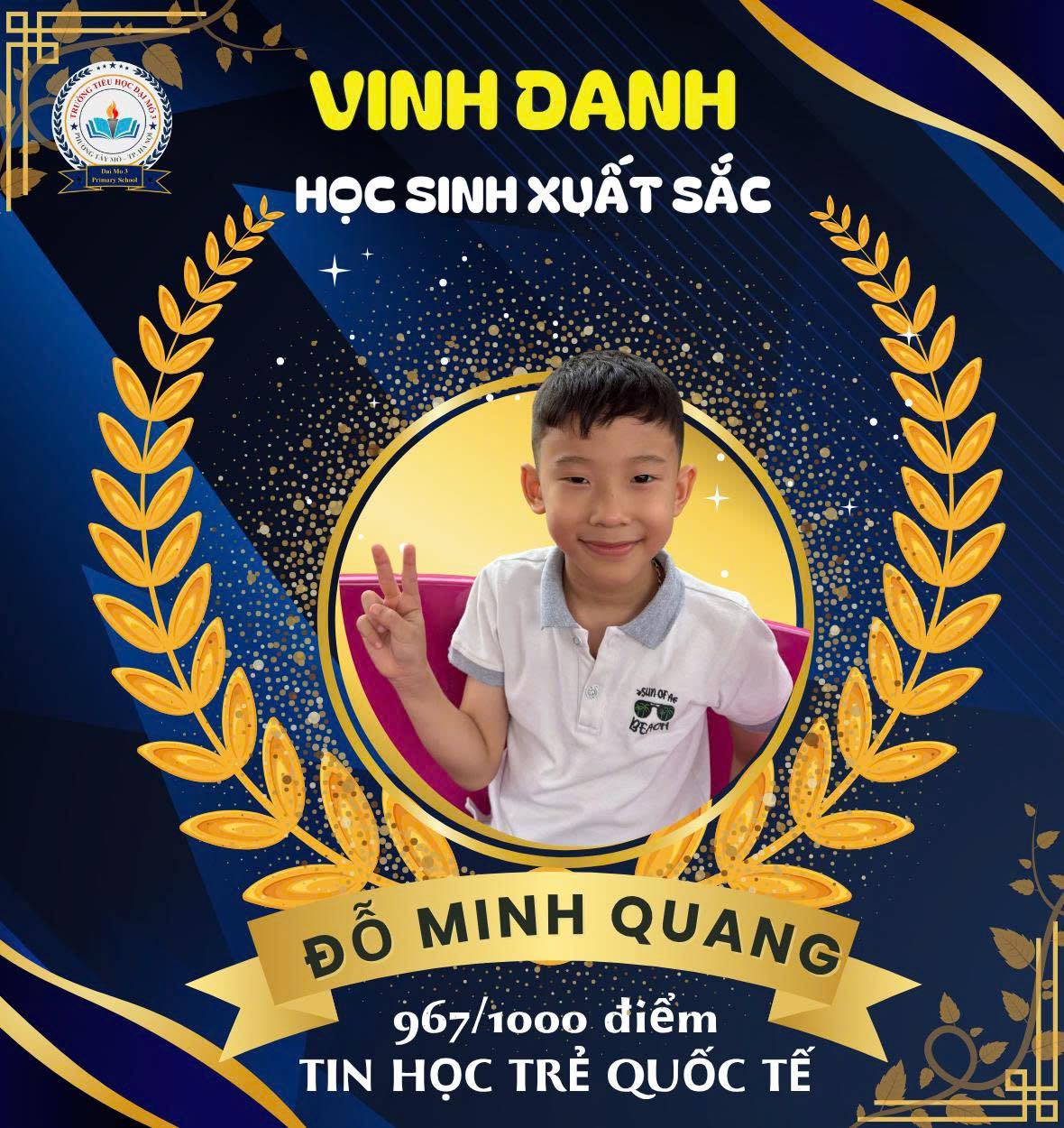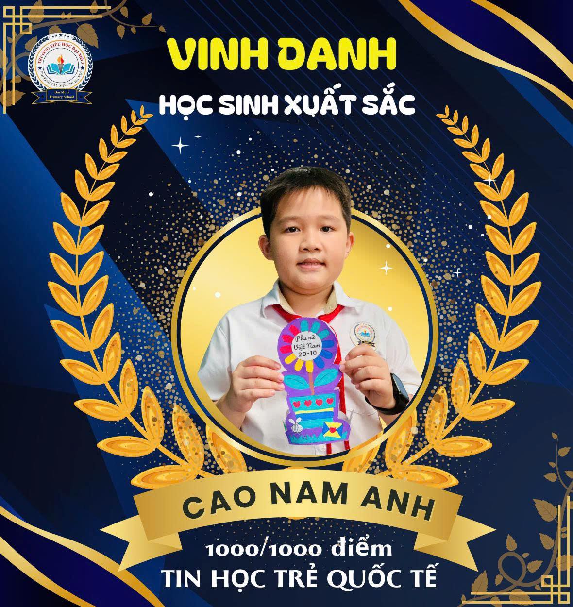 🌟 VINH DANH HỌC SINH XUẤT SẮC GHI DANH VÀO VÒNG CHUNG KHẢO CUỘC THI TIN HỌC TRẺ QUỐC TẾ 🌟 By quantrivien Views: 3 - Category: Tin tức - On: 31/03/2026 Niềm vui và tự hào tiếp tục lan tỏa tại Trường Tiểu học Đại Mỗ 3 khi các em học sinh đã xuất sắc chinh phục thành công vòng thi vừa qua, ghi danh vào Top 3 thí sinh phường Tây Mỗ xuất sắc nhất bước vào vòng Chung khảo Cuộc thi Tin học trẻ quốc tế. Đặc biệt: Em Cao Nam Anh – lớp 4A5 đã xuất sắc đạt số điểm tuyệt đối 1000/1000, thể hiện năng lực tư duy logic, bản lĩnh và sự tự tin nổi bật. Em Đỗ Minh Quang lớp 3A5 – thí sinh nhỏ tuổi nhất hội thi, cũng ghi dấu ấn ấn tượng với 967/1000 điểm, khẳng định tài năng và sự nỗ lực không ngừng. Thành tích đáng tự hào này là minh chứng cho tinh thần học tập nghiêm túc, niềm đam mê công nghệ cùng sự cố gắng bền bỉ của các em học sinh. Đồng thời là kết quả của sự tận tâm từ cô giáo hướng dẫn cùng sự đồng hành và quan tâm sát sao của gia đình. Chúc các em tiếp tục giữ vững phong độ, tự tin tỏa sáng và đạt kết quả cao nhất tại vòng Chung khảo sắp tới. Trường Tiểu học Đại Mỗ 3 tin tưởng rằng, với bản lĩnh và trí tuệ của mình, các em sẽ tiếp tục viết nên những thành tích rực rỡ hơn nữa trên hành trình chinh phục tri thức.