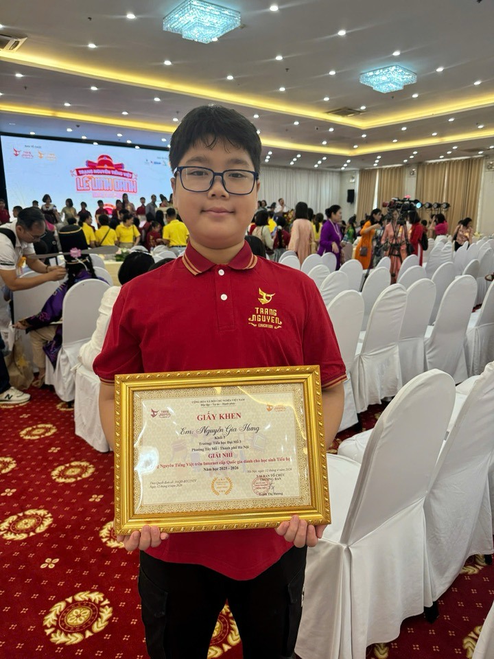 VINH DANH HỌC SINH ĐẠT GIẢI NHÌ CUỘC THI TRẠNG NGUYÊN TIẾNG VIỆT CẤP QUỐC GIA🌟 By quantrivien Views: 6 - Category: Tin tức - On: 12/04/2026 Trường Tiểu học Đại Mỗ 3 trân trọng chúc mừng em Nguyễn Gia Hưng – học sinh lớp 5A5 đã xuất sắc đạt Giải Nhì tại Kỳ thi Trạng Nguyên Tiếng Việt cấp Quốc gia. 💕💕💕 Để có được thành tích đáng tự hào này, em đã không ngừng nỗ lực, chăm chỉ rèn luyện và quyết tâm vượt qua hàng ngàn thử thách để bước vào trường thi. Kết quả này cũng là minh chứng cho sự đồng hành, quan tâm của gia đình cùng sự tận tâm hướng dẫn của các thầy cô giáo. 🌿🌿🌿 Nhà trường tin tưởng rằng, với nền tảng vững chắc và niềm đam mê học tập, em Nguyễn Gia Hưng sẽ tiếp tục phát huy năng lực, chinh phục thêm nhiều thành tích cao hơn nữa trong tương lai. 👏👏👏 Một lần nữa, xin chúc mừng em và chúc em luôn tự tin, tỏa sáng trên những chặng đường phía trước! 🎉